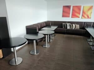 Innen-Möblierung (Horgen-Glarus-Tische und -Stühle, Lounge-Sofas) und vieles mehr.