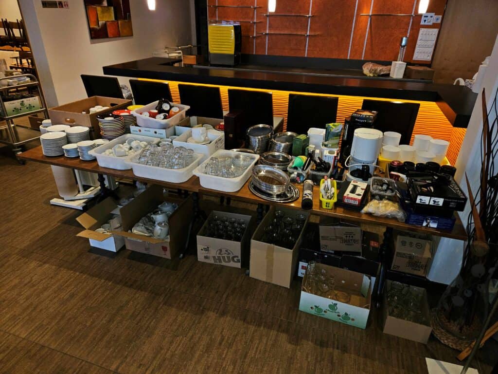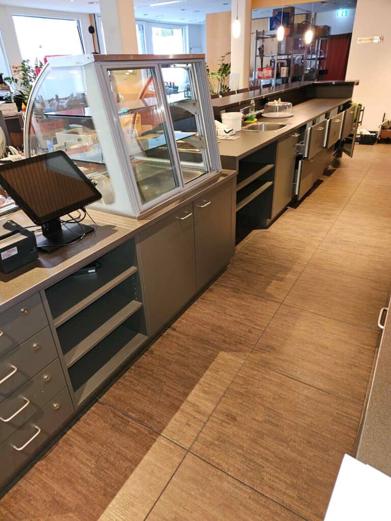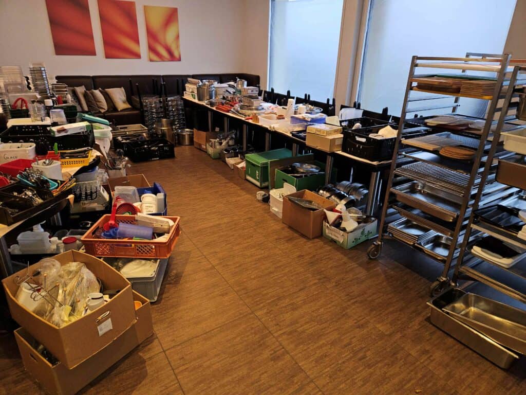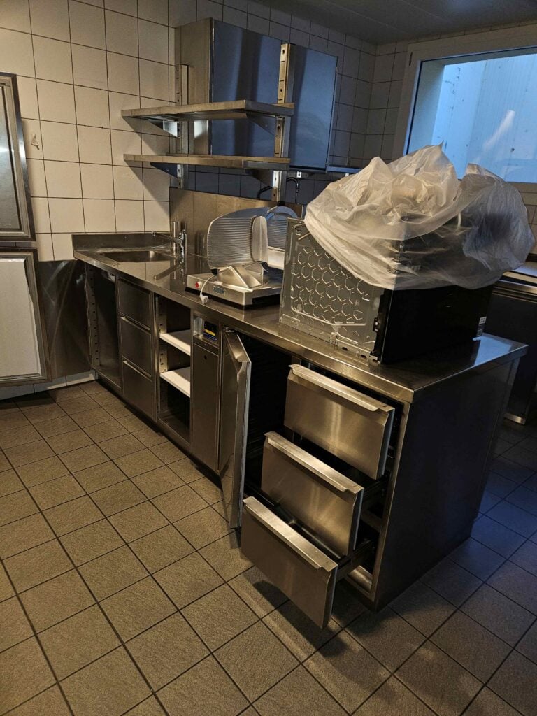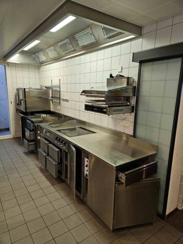 Der Verkauf umfasst die komplette Kücheneinrichtung, Buffetanlagen, Kühl- und Lüftungssysteme sowie die Innen- und Terrassenmöblierung.